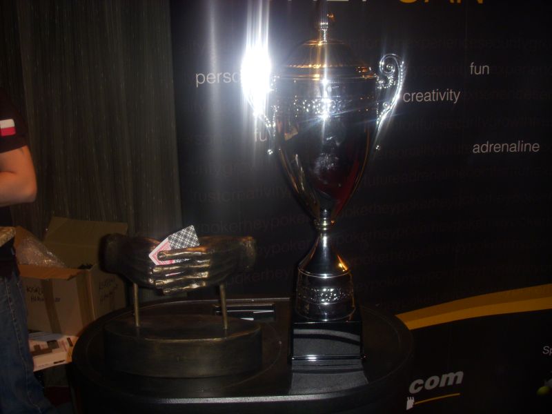 Na zdjęciu nagrody HESOPowe. Po lewej puchar dla zwycięzcy main eventu, a po prawej wysoki puchar dla osoby, która wygra high roller.